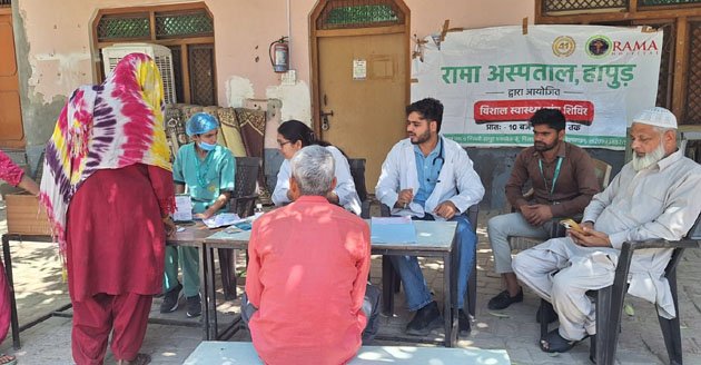गाजियाबाद। सामाजिक कार्यों में बढ़ चढ़कर भाग लेने वाले कांग्रेस नेता एवं प्रमुख समाजसेवी महताब पठान द्वारा मुरादनगर के चौड़ा खड़ंजा पर स्थित मदरसा दारूल उलूम सादिया में स्वास्थ्य शिविर का आयोजन कराया गया। रामा हास्पिटल हापुड़ की डाक्टरों की टीम ने मुरादनगर में आकर लोगों के स्वास्थ्य की जांच की और उन्हें दवा का भी वितरण किया। शुगर, ब्लड प्रेशर के अलावा स्वास्थ्य संबंधी जांच और उपचार के लिए दवाएं लिखीं। महताब पठान ने बताया कि मलिन बस्तियों में स्वास्थ्य शिविर लगाने की रामा हास्पिटल ने पहल की है यह सराहनीय है। उन्होंने बताया कि आगे भी इसी तरह के स्वास्थ्य शिविर लगवाए जाएंगे ताकि लोगों को स्वास्थ्य लाभ मिल सके। उन्होंने राम हास्पिटल की आई चिकित्साकर्मियों की टीम का भी शुक्रिया अदा किया।