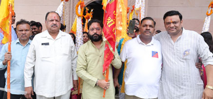 गाजियाबाद। हर वर्ष की भांति इस वर्ष भी शुक्रवार को श्याम बाबा की भव्य विशाल एवं संगीतमय निशान शोभा यात्रा का आयोजन किया गया। यह शोभा यात्रा श्री ठाकुरद्वारा मंदिर हापुड़ मोड़ से प्रारंभ हुई। मंदिर प्रांगण में निशानों की पूजा अर्चना के बाद श्याम बाबा को भव्य श्रृंगार के साथ रथ पर विराजमान किया गया। बाबा की पावन जोत प्रज्जवलित करके शोभा यात्रा का शुभारंभ किया गया। रंग बिरंगे परिधानों से शोभित श्याम प्रेमी हाथों में निशान लेकर मंदिर प्रांगण से रवाना हुए।