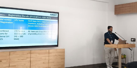 गाजियाबाद। एबीईएसआईटी द्वारा इंटरनल हैकेथॉन का आयोजन 12 सितंबर 2025 को संपन्न हुआ। इस हैकेथॉन में 175 टीमों ने भाग लिया जो 12 घन्टे लगातार कोडिंग करेंगी। इन सभी टीमों से 45 $ 5 वेटिंग टीमों का चयन सॉफटवेयर एवं हार्डवेयर एडिशन के लिए होगा। जो नेशनल लेवल एसआईएच-2025 के पोर्टल में रजिस्टर की जाएंगी। इन सभी टीमों का चयन विशेषज्ञों द्वारा किया जायेगा जिसमें अदिति अग्रवाल, प्रबंध निदेशक-एडिसैप सिस्टम प्राइवेट लिमिटेड, प्रतीक कपूर तकनीकी प्रमुख कोफोर्ज सॉल्यूशन, मृदुल गोयल जनरल एआई इंजीनियर (सहायक प्रबंधक डिजिटल और नवाचार सीओई), अंशु तिवारी, इंजीनियरिंग निदेशक, ब्लूयॉन्डर इंडिया प्राइवेट, कमल कश्यप् ब्लॉकचेन डेवलपर एण्ड रिसर्च एक्जीक्यूटिव वंशिका अग्रवाल, एसोसिएट सॉफटवेयर इंजीनियर, सेलेबएआई टेक्नोलॉजी, उपदेश प्रताप सिंह, एआर/वीआर डेवलपर, मेक, आर. सुशांत शर्मा एसोसिएट प्रोडक्ट मैनेजर इंडीसियन। इस कार्यक्रम में संस्थान के सलाहकार प्रो.(डॉ.) एम. के. झा, निदेशक प्रशासन, डीन, विभागाध्यक्ष, संकाय समन्वयक आदि ने उपस्थित रहकर छात्रों का उत्साहवर्धन किया। इस इन्टरनल हैकेथॉन के संयोजक डा. कौशल किशोर ने बताया कि एक दिवसीय प्रोग्राम में सभी टीमों ने 12 घंटे लगातार कोडिंग करके अपना आइडिया प्रोटो टाईप प्रस्तुत किया है।