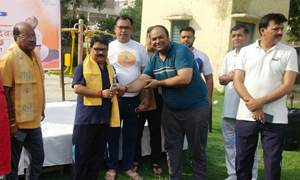 गाजियाबाद। अंतर्राष्ट्रीय योग दिवस के अवसर पर भाजपा गांधीनगर मंडल द्वारा सम्राट मिहिर भोज पार्क, आनंद विहार, वार्ड-39 (निकट राकेश मार्ग), गाजियाबाद में प्रात: योगाभ्यास कार्यक्रम का आयोजन किया गया। इस कार्यक्रम में विशिष्ट अतिथि के रूप में भाजपा प्रदेश उपाध्यक्ष विजय बहादुर पाठक एवं महानगर महामंत्री गोपाल अग्रवाल ने सभी के साथ योगाभ्यास किया। योग गुरु जितेंद्र सिंह के निर्देशन में सभी वरिष्ठजन, कार्यकर्ता एवं पदाधिकारियों ने योग किया। कार्यक्रम में भाजपा महानगर आर्थिक प्रकोष्ठ संयोजक उदित मोहन, स्थानीय पार्षद हिमांशु लव, भाजपा के वरिष्ठ नेता हातम सिंह नागर, पूर्व पार्षद तेन सिंह, पूर्व पार्षद संजीव शर्मा, सुभाष शर्मा, मंडल महामंत्री सुनील प्रताप सिंह, मंडल महामंत्री एवं कार्यक्रम संयोजक मनु वशिष्ठ, युवा मोर्चा अध्यक्ष राहुल भाटी, सुनील दत्त, गौरव चौधरी, अजीत गौतम, रोहित गौतम, आशीष जैन, पंचायत प्रकोष्ठ के मंडल संयोजक हरि गुप्ता, वार्ड अध्यक्ष संजीव गुप्ता, अनिल श्रीवास्तव, प्रमोद कामत, महावीर नागर, सतीश शर्मा, पंकज सेन, मुकेश शर्मा, धर्मराज आदि मौजूद रहे।