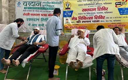 गाजियाबाद। मेरठ रोड मोरटा स्थित श्री मननधाम में रक्तदान एवं नेत्र चिकित्सा शिविर का आयोजन किया गया। शक्ति सेवा समिति चैरिटेबल ट्रस्ट के सौजन्य से रक्तदान शिविर वरदान मल्टीस्पेशिलिटी हॉस्पिटल, गाजियाबाद द्वारा एवं नेत्र चिकित्सा शिविर, वरदान नेत्र चिकित्सालय, राजनगर द्वारा आयोजित किया गया। पिछले कुछ वर्षों से श्री मननधाम में रक्तदान शिविर एवं नेत्र चिकित्सा शिविर का आयोजन कर रहा है जिसमें विभिन्न क्षेत्रों से लोग पूरे उत्साह के साथ हिस्सा लेते रहे हैं। शिविर के मख्य अतिथि द सचदेवा ग्रुप के चेयरमैन एंड सीईओ अशोक सचदेव रहे। वार्ड नंबर 16 की नवनिर्वाचित पार्षद नीलम भी कार्यक्रम में मौजूद रही। रक्त दान शिविर सुबह 10 बजे से 4 बजे और नेत्र चिकित्सा शिविर सुबह 10 बजे से 1 बजे तक आयोजित किया गया। तकरीबन 80 लोगों को रक्तदान के लिए पंजीकृत किया गया, जिनमें से 67 लोगों ने विशेष प्रकार की चिकित्सकीय जांच के बाद रक्त दान दिया और लगभग 125 लोगों के आँखों की जाँच की गयी दानदाताओं को इस मानवतापूर्ण सेवा के लिए सराहना प्रमाण पत्र से सम्मानित किया गया, उन्हें नाश्ता भी दिया गया। रक्तदाताओं को बाद में वरदान मल्टीस्पेशिलिटी हॉस्पिटल, गाजियाबाद द्वारा एक गोपनीय ब्लड टेस्ट रिपोर्ट भी दी जाएगी। दानदाताओं को एक डोनर्स कार्ड भी दिया जाएगा, जिसके द्वारा वे अगले एक साल में जरूरत पड़ने पर अपने परिवार के सदस्यों के लिए रक्त प्राप्त कर सकते हैं। शक्ति सेवा समिति के चेयरमैन केके खन्ना का मानना है कि नियमित रूप से इस तरह के रक्तदान शिविर आयोजित करना बहुत महत्वपूर्ण है और समाज के सभी वर्गों को इस मानवतापूर्ण कार्य और लोगों की जिन्दगियों को बचाने में अपना योगदान देना चाहिए। शिविर में शक्ति सेवा समिति चैरिटेबल ट्रस्ट की तरफ से धर्मपाल गोयल, मनीष कपूर एवं गुलशन बजाज भी मौजूद रहे।