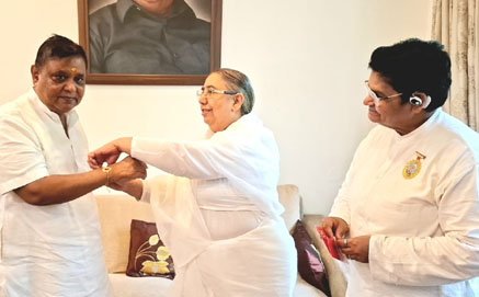 ब्रह्माकुमारी बी के विमला दीदी ने सांसद अतुल गर्ग को बांधी राखी