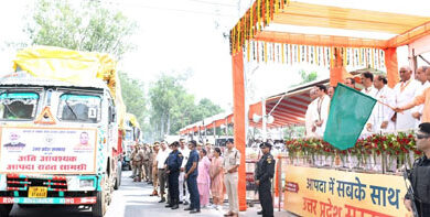 बाढ़ पीड़ितों के लिए19 हजार राहत सामग्री किट के 48 वाहनों को सीएम योगी ने किया फ्लैग आफ