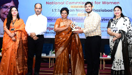 जानकारी उपलब्ध होना अत्यंत आवश्यक है। उन्होंने इस दिशा में महिला आयोग द्वारा किये गए अनेक पहल एवं कार्यों के बारे में जानकारी दी। अपने सम्बोधन में श्रीमती रहटकर ने वर्तमान समय में कौशल विकास एवं अपने आपको तकनीकों के माध्यम से स्वावलम्बन की दिशा में प्रयास करने की आवश्यकता जताई जिससे महिलाएं भी बराबरी से परिवार एवं समाज के विकास में अपना योगदान देकर समानता के अवसरों का दोहन कर सकें। इसके पूर्व आई.टी.एस गाजियाबाद के आईटी एवं स्नातक परिसर के निदेशक प्रोफेसर (डॉ.) सुनील कुमार पांडेय ने सभी अतिथियों का स्वागत करते हुए कहा कि बिना 50 प्रतिशत आबादी कि योगदान एवं उनकी बराबरी की भूमिका को सुनिश्चित करते हुए एवं महिलाओं को सभी क्षेत्रों में आगे बढ़ने का अवसर प्रदान किया बिना समाज और देश के समग्र विकास का लक्ष्य प्राप्त कर राष्ट्र को विश्वगुरु के रूप में स्थापित कर पाना संभव ही नहीं है। उन्होंने कहा की इस लक्ष्य की प्राप्ति कि हम सभी को अपने व्यक्तिगत स्तर पर परिवार में महिलाओं के प्रति सम्मान, उनकी सक्रिय भागीदारी एवं योगदान सुनिश्चित करना अत्यंत आवश्यक है। इसके पूर्व राष्ट्रीय महिला आयोग की तरफ से एक- दिवसीय कार्यशाल का आयोजन किया गया जिसमें स्वतंत्र शोधकर्ता डॉ. पलक मित्तल, अंतर्राष्ट्रीय स्तर पर ख्याति प्राप्त साइबर सिक्योरिटी विशेषज्ञ सुश्री कामाक्षी शर्मा तथा राष्ट्रीय महिला आयोग के मीडिया सलाहकार शिवम गर्ग ने लैंगिक समानता एवं साइबर जागरूकता विषय पर एक कार्यशाला का आयोजन किया गया। इस अवसर पर सभी विशेषज्ञों का स्वागत करते हुए आई.टी.एस (स्नातक परिसर), मोहन नगर, गाजियाबाद की उपप्राचार्य डॉ नैंसी शर्मा ने कार्यशाला के विषयवस्तु पर प्रकाश डाला एवं कहा कि आज के समय में लैंगिक समानता को सुनिश्चित करने के लिए बड़े स्तर पर जागरूकता फैलाने एवं इस दिशा में गंभीर प्रयास की आवश्यकता है।
