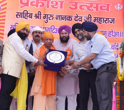 लखनऊ। उत्तर प्रदेश के मुख्यमंत्री योगी आदित्यनाथ यहां डीएवी कॉलेज, प्रांगण में गुरु नानक देव जी महाराज के 556वें प्रकाश पर्व के उपलक्ष्य में आयोजित कार्यक्रम में सम्मिलित हुए। उन्होंने श्री गुरुग्रन्थ साहिब के सामने मत्था टेका। कार्यक्रम में मुख्यमंत्री को सरोपा एवं स्मृति चिन्ह भेंट कर स्वागत किया गया।