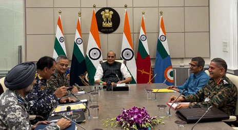 भारत-पाक सीमा पर तनाव को लेकर रक्षामंत्री राजनाथ सिंह ने ली तीनों सेनाओं के प्रमुखों की अहम बैठक