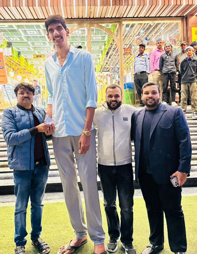 गाजियाबाद आगमन के बाद करण सिंह ने मोहित गुर्जर और गौरव बंसल के साथ शगुन स्वीट्स का दौरा किया। इस दौरान उनका शगुन स्वीट्स की ओर से भव्य स्वागत किया गया। दुकान के मालिक हर्ष बंसल ने करण सिंह और मोहत गुर्जर का पुष्पगुच्छ देकर स्वागत किया। वहीं समाजसेवी गौरव बंसल ने भी करण सिंह और मोहित गुर्जर को राधा कृष्ण की चांदी की छवि देकर विशेष सम्मान किया। इस मौके पर करण सिंह ने गौरव बंसल के साथ भोजन भी किया।गौरव बंसल ने कहा कि गाजिÞयाबाद के लिए गर्व का क्षण है कि विश्व प्रसिद्ध व्यक्तित्व करण सिंह और हमारे गाजियाबाद आए है। करण मूल रूप से सहारनपुर के रहने वाले हैं। वह फिलहाल मेरठ के भंगेला में अपने फार्म हाउस में रहते हैं। करण सिंह का जन्म भी बेहद खास रहा है। वह दुनिया के सबसे भारी और लंबे नवजात शिशु के रूप में गिनीज वर्ल्ड रिकॉर्ड्स में दर्ज हैं। जन्म के समय उनकी लंबाई 3 फीट और वजन 8.87 किलोग्राम था। करण के पिता संजय सिंह की लंबाई 6.5 फीट है, जबकि उनकी मां श्वेतलाना 7 फीट लंबी हैं. श्वेतलाना बास्केटबॉल की राष्ट्रीय खिलाड़ी और कोच भी रह चुकी हैं। करण सिंह की अप्रत्याशित ऊँचाई और मोहित गुर्जर की लोकप्रियता के चलते शगुन स्वीट्स में फोटो और वीडियो लेने के लिए बड़ी संख्या में लोग इकट्ठा हो गए। सोशल मीडिया पर भी इस विजिट की तस्वीरें वायरल हो रही हैं। इस मोके पर मयंक सूद फाउंडर हैप्पी टेल्स फाउंडेशन व अंकित पाल भी मौजूद रहे।
