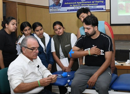 कार्यशाला के दौरान प्रोफेसर रोसारियो बेलिया ने खेल फिजियोथेरेपी में टेपिंग की उन्नत तकनीकों, उनके वैज्ञानिक आधार तथा उपयोग पर विस्तार से जानकारी दी। इस सत्र के माध्यम से विद्यार्थियों को वास्तविक खेल में टेपिंग के प्रभावी उपयोग सीखने का अवसर प्राप्त हुआ। टेपिंग तकनीक शरीर की मांसपेशियों और जोड़ों को सहारा देने की एक विशेष विधि है, जिससे उनकी स्वाभाविक गति बनी रहती है। यह तकनीक खेल के दौरान चोट से बचाव, दर्द में कमी और शरीर के संतुलन को बेहतर बनाने में सहायक होती है। खेल प्रबंधन में इसका उपयोग खिलाडियों के शीघ्र उपचार और सुरक्षित रूप से खेल में वापसी के लिए किया जाता है। इस अवसर पर विद्यार्थियों ने चेयरमैन, आईटीएस-द एजुकेशन ग्रुप, डॉ. आरपी चड्ढा एवं वाईस चेयरमैन, आईटीएस-द एजुकेशन ग्रुप अर्पित चड्ढा के प्रति आभार व्यक्त करते हुए कहा कि उनके मार्गदर्शन एवं सहयोग से ही विद्यार्थियों को विदेशी विशेषज्ञ से सीखने का यह बहुमूल्य अवसर प्राप्त हुआ। कार्यशाला का समापन धन्यवाद ज्ञापन के साथ किया गया, जिसमें विशेषज्ञ वक्ता के योगदान की सराहना की गई। यह कार्यशाला संस्थान की शैक्षणिक उत्कृष्टता वं अंतरराष्ट्रीय स्तर पर विद्यार्थियों को सशक्त बनाने की प्रतिबद्धता को दर्शाता है।