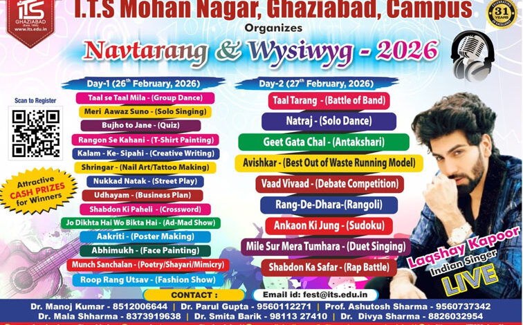 आईटीएस मोहननगर में दो दिवसीय वार्षिकोत्सव नवतरंग एवं विजविग 2026 का 26 से होगा भव्य आयोजन