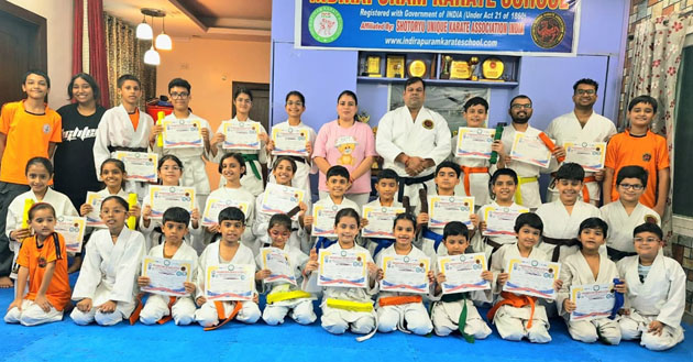 इंदिरापुरम कराटे स्कूल द्वारा कराटे बेल्ट टेस्ट आयोजित
