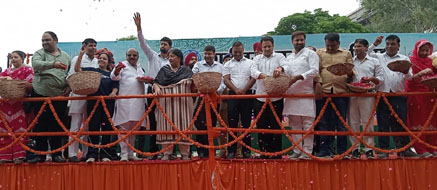 गाजियाबाद। हरिद्वार, ऋषिकेश गौमुख आदि से पावन गंगाजल लेकर लौट रहे कांंंंवड़ियों की संख्या बढ़ने के साथ ही जीटी रोड पर नजारा देखते हुए बन रहा है। नगर निगम के द्वारा मेरठ रोड तिराहे पर कांवड़ियों पर पुष्प वर्षा का कार्यक्रम रखा गया। इस दौरान महापौर सुनीता दयाल, शहर विधायक संजीव शर्मा, पुलिस आयुक्त जे रविदं्र गौड, मुख्य विकास अधिकारी अभिनव गोपाल, नगर आयुक्त विक्रमादित्य सिंह मलिक आदि के द्वारा कांवड़ियों पर पुष्प वर्षा करते हुए स्वागत किया गया। इस दौरान निगम के दूसरे अधिकारियों के साथ पार्षदों के द्वारा भी कांवड़ियों के स्वागत में बढ़ चढ़कर हिस्सा लिया गया। कांवड़ियों की बढ़ती संख्या के बीच पुलिस प्रशासन तथा दूसरे विभाग के अधिकारियों के द्वारा पल पल की स्थिति पर नजर रखी जा रही है। मोहन नगर तिराहे पर सिविल डिफेंस के द्वारा शिविर लगाया गया है जहां पर अतिरिक्त