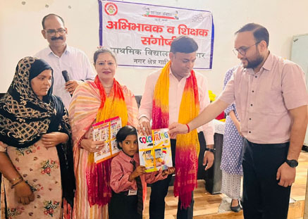 गाजियाबाद। मंगलवार को गाजियाबाद के सभी परिषदीय विद्यालयों में अभिभावक शिक्षक बैठक का आयोजन किया गया। इसी क्रम में पीएम श्री प्राथमिक विद्यालय कविनगर नगर क्षेत्र गाजियाबाद में जिला बेसिक शिक्षा अधिकारी ओ.पी यादव द्वारा अभिभावकों से रिमेडियल शिक्षक सहगामी गतिविधियां पर चर्चा की गई। जिला बेसिक शिक्षा अधिकारी द्वारा अपने उद्बोधन में शिक्षा क्यों जरूरी है, अभिभावकों को समझाते हुए कहा कि बच्चों को नियमित रूप से विद्यालय भेजने का आह्वान किया। विद्यालय से जो कार्य घर के लिए दिया जाता है उसे पूर्ण करने में बच्चों का सहयोग करें। अभिभावकों से सहगामी गतिविधियों की जानकारी ली गई। कक्षा एक की इंशा, रेखा, नैना ने कविता कहानी सुनाते हुए अभिभावकों को मंत्रमुग्ध कर दिया। 100 प्रतिशत उपस्थिति वाले छात्र एवं छात्राओं के अभिभावकों को मुख्य अतिथि द्वारा सम्मानित किया गया। मीटिंग में उपस्थित सभी अभिभावक एवं गणमान्य व्यक्तियों का बच्चों द्वारा टीका लगाकर एवं माला पहनाकर स्वागत किया गया गया। साथी फाउंडेशन की संयोजिका एवं विद्यालय को गोद लेने वाली काजल छिब्बर द्वारा बच्चों को सूक्ष्म जलपान एवं पुरस्कार देकर सम्मानित किया गया। इस अवसर पर खंड शिक्षा अधिकारी विश्वजीत राठी, निपुण सेल के प्रभारी सौरभ कुमार, हरनूर कौर, एसएमसी अध्यक्ष प्रमोद कुमार मलिक, गीता गोयल, अंशु चौधरी, सुबोध राणा, शुभम राणा, कार्तिक धामा, एसएमसी उपाध्यक्ष मंजू शर्मा, साधना के अलावा लगभग 80 अभिभावकों ने मीटिंग में प्रतिभाग किया। अंत में प्रधानाध्यापक डा. राजकुमार ने सभी का आभार व्यक्त किया।