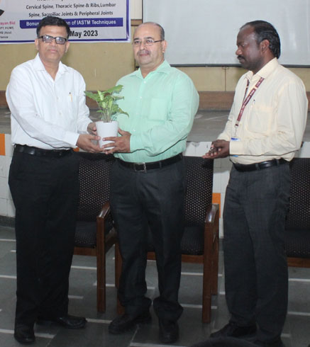 डॉ. दिब्येन्दु नारायण बिद ने अपनी पीएचडी आरके विश्वविद्यालय, राजकोट से की है। वे एक प्रमाणित आॅकिस्टयोपैथ और कायरोप्रैक्टिशनर है। उनके पास 26 साल का क्लीनिकल और टीचिंग का अनुभव है। डॉ. दिबयेन्दुरारायण ने रीढ़ और विभिन्न परिधीय जोड़ों के मैनिपुलेशन का प्रदर्शन किया जो लम्बे समय से चल रहे दर्द से राहत दिलाने में मदद करता है। मैनिपुलेशन थेरेपी सीखने के दौरान छात्रों को बिल्कुल अलग अनुभव हुआ और उन्होंने प्रत्येक तकनीक का बड़े उत्साह और ईमानदारी के साथ अभ्यास किया। कार्यशाला के दौरान छात्रों ने मैनिपुलेशन थेरेपी के बारे में कई प्रश्न रखे जिन्हें डॉ. दिबयेन्दुनारायण बिद ने प्रभावी ढंग से दूर किया। छात्रों ने आईटीएस-द एजूकेशन ग्रुप के वाईस चेयरमैन अर्पित चड्ढा को उनके ज्ञान को बढ़ाने के लिए इतना बड़ा मंच देने के लिये और उनकी शिक्षा को व्याख्यान कक्षों तक सीमित न रखने के लिए धन्यवाद दिया। अर्पित चड्ढा ने फिजियोकॉन-2023 की पहली कार्यशाला के सफल आयोजन के लिए डा. सीएस राम और अन्य सभी शिक्षकों को बधाई दी और उन्हें भविष्य में होने वाली कार्यशालाओं के लिए शुभकामनाएं दी।