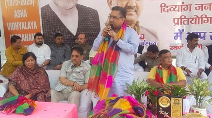 गाजियाबाद। भाजपा द्वार आशा विद्यालय में दिव्यांगों के लिए सांसद खेल महोत्सव बनाया गया। जिस में विशेष बच्चों ने भाग लिया। महोत्सव का शुभारंभ भाजपा राष्ट्रीय महामंत्री सुनील बंसल ने गुब्बारों को हवा में छोड़ कर लिया। प्रारंभ में मूकबधिर बच्चों ने सांस्कृतिक कार्यक्रम प्रस्तुत किए साथ ही मूकबधिर बच्चों ने देश भक्ति संगीत पर नाच कर प्रशंसा लूटी, चूंकि मूकबधिर सुन नहीं सकते हैं फिर भी संगीत के वाइब्रेशन को महसूस करके वो बहुत सुंदर थिरके। इस अवसर पर सुनील बंसल ने अपने संबोधन में बताया कि सांसद खेल महोत्सव एक खेल आयोजन है जो युवाओं में खेल भावना को बढ़ावा देता है और शारीरिक व मानसिक स्वास्थ्य के लिए फिटनेस को प्रोत्साहित करता है। यह पारंपरिक खेलों के साथ-साथ आधुनिक खेलों को भी बढ़ावा देता है और प्रतिभाओं को राष्ट्रीय स्तर पर आगे बढ़ने का मौका देता है। सांसद अतुल गर्ग ने बताया कि सांसद खेल महोत्सव का उद्देश्य युवाओं में खेल संस्कृति, टीम वर्क और नेतृत्व का विकास करना और फिट इंडिया मूवमेंट को बढ़ावा देना है। खिलाड़ियों ने स्कूल बैंड पर मार्च पास्ट निकला। सभी स्पेशल बच्चों ने अपने अपने खेलों में उम्दा प्रदर्शन किया।