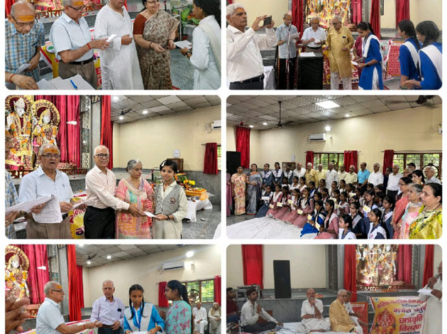 गाजियाबाद। वरिष्ठ नागरिक सेवा समिति, गाजियाबाद द्वारा गणेश चतुर्थी एवं छात्रवृत्ति वितरण समारोह दिनांक 27 अगस्त (बुधवार) को प्रात: 8:30 बजे, शिव मंदिर, नेहरू नगर प्रांगण में ,समिति अध्यक्ष डॉ. जे. एल. रैना की अध्यक्षता में बड़े ही हर्षोल्लास और धार्मिक माहौल में आयोजित किया गया।कार्यक्रम का शुभारंभ समिति के महासचिव श्री आर. के. गुप्ता एवं उनकी धर्मपत्नी सरिता गुप्ता द्वारा हवन-पूजन से हुआ। विधिविधानपूर्वक भगवान गणेश की पूजा-अर्चना एवं वंदना के उपरांत प्रसाद वितरण कराया गया। इसके बाद छात्रवृत्ति वितरण समारोह प्रारंभ हुआ। इस अवसर पर समिति महासचिव आर के गुप्ता ने समिति के उद्देश्यों एवं सेवा गतिविधियों की जानकारी प्रदान की। समिति द्वारा इस अवसर 143 मेधावी एवं जरूरतमंद विद्यार्थियों को, जो गाजियाबाद के विभिन्न विद्यालयों से चयनित किए गए थे, कुल 5.73 लाख की छात्रवृत्ति वितरित की गई। शिक्षा प्रकल्प प्रभारी ए. के. गुप्ता ने बताया कि यह धनराशि समिति सदस्यों एवं समाजसेवी दानदाताओं के सहयोग से एकत्र की गई है। समिति अध्यक्ष डॉ. रैना ने बच्चों को प्रेरित करते हुए कहा
