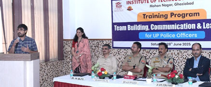 गाजियाबाद। उत्तर प्रदेश पुलिस के अधिकारियों के लिए आई.टी.एस मोहननगर में टीम बिल्डिंग, संप्रेषण और नेतृत्व विषय पर एक दिवसीय विशेष प्रशिक्षण कार्यक्रम का आयोजन किया गया। कार्यक्रम का उद्देश्य उच्च प्रभाव वाली सार्वजनिक भूमिकाओं में काम करने वाले आधिकारियों की पारस्परिक प्रभावशीलता और नेतृत्व क्षमताओं को मजबूत करना था। कार्यक्रम का उद्घाटन समारोह में आलोक प्रियदर्शी (आईपीएस), अपर पुलिस आयुक्त, गाजियाबाद व निमिष पाटिल (आईपीएस), डीसीपी ट्रांस हिंडन, गाजियाबाद, आईटीएस- द एजुकेशन ग्रुप के वाईस चेयरमैन अर्पित चड्ढा, डायरेक्टर पी आर सुरिंदर सूद, इंस्टिट्यूट आॅफ टेक्नोलॉजी एंड साइंस के निदेशक डॉ. वीएन बाजपेई व आईटीएस यूजी कैंपस के निदेशक प्रो सुनील कुमार पांडे द्वारा परंपरागत रूप से दीप प्रज्जवलित कर के किया गया। कार्यक्रम के प्रारंभ में संस्थान के निदेशक डॉ. वी एन बाजपेई ने पुलिस विभाग के अधिकारियों का स्वागत किया। अपने स्वागत भाषण में प्रशिक्षण कार्यक्रम की रूपरेखा से अवगत कराया व इस प्रकार के आयोजन के महत्व पर प्रकाश डाला। अपर पुलिस आयुक्त आलोक प्रियदर्शी ने अपने प्रेरणादायक संबोधन में कहा कि आज के दौर में एक सफल पुलिस अधिकारी बनने के लिए तकनीकी दक्षता के साथ-साथ मजबूत टीम भावना, प्रभावी संवाद कौशल और नेतृत्व क्षमता भी अत्यंत आवश्यक है। इस अवसर पर डीसीपी ट्रांस हिंडन, गाजियाबाद निमिष पाटिल (आईपीएस) ने कहा कि इस प्रकार के प्रशिक्षण पुलिस विभाग को और अधिक सक्षम और संवेदनशील बनाने की दिशा में अहम भूमिका निभाते हैं। इस अवसर पर अर्पित चड्ढा ने सम्मेलन के आयोजन हेतु प्रसन्नता जाहिर की और कहा कि आईटीएस संस्थान समूह देश सेवा में प्रत्यक्ष अथवा परोक्ष से योगदान हेतु सदा तत्पर है। सुरिंदर सूद ने कहा कि यह कार्यक्रम अकादमिक संस्थाओं और सुरक्षा एजेंसियों के बीच सहयोग का सशक्त उदाहरण है तथा संस्थान को इस तरह के उपयोगी प्रशिक्षण कार्यक्रमों का हिस्सा बनने पर गर्व है। आई टी एस -द एजुकेशन ग्रुप के चेयरमैन आर पी चड्ढा ने आयोजको को कार्यक्रम के सफल आयोजन हेतु शुभकामनाएं दीं।